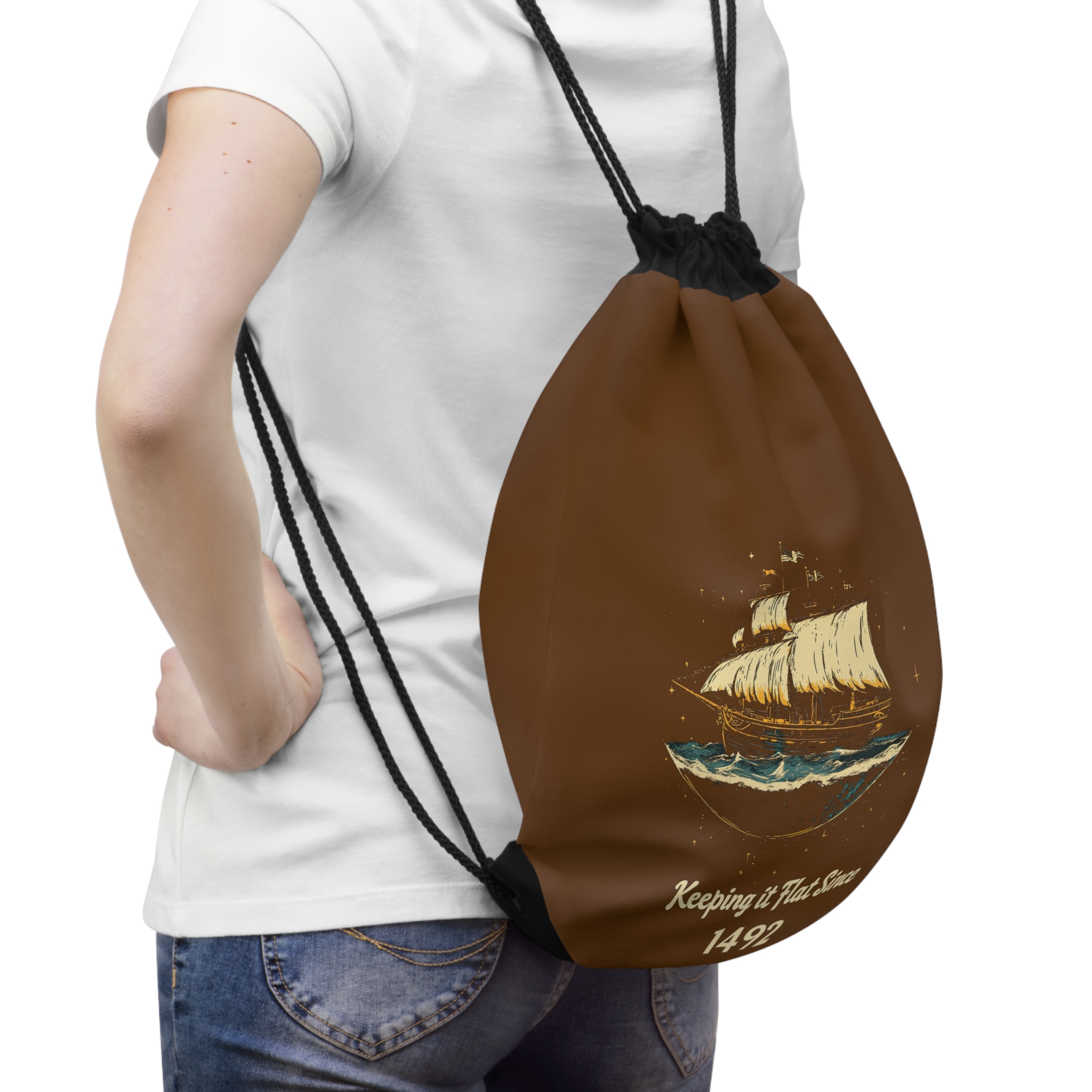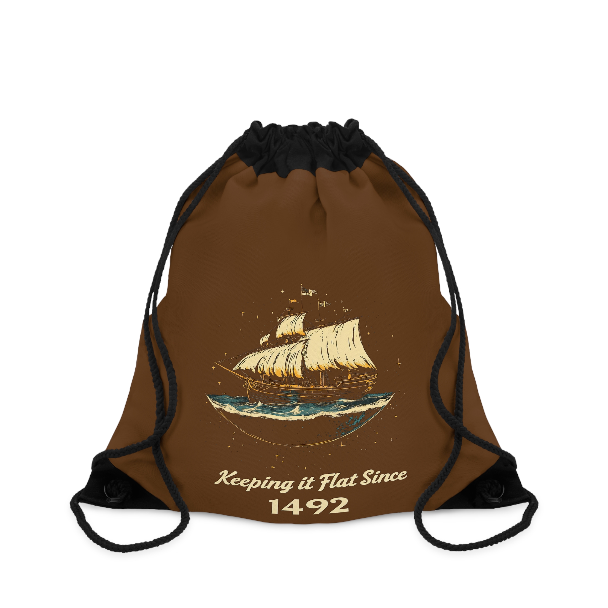 Be the first to review “Keeping it Flat Since 1492, Drawstring Bag”
