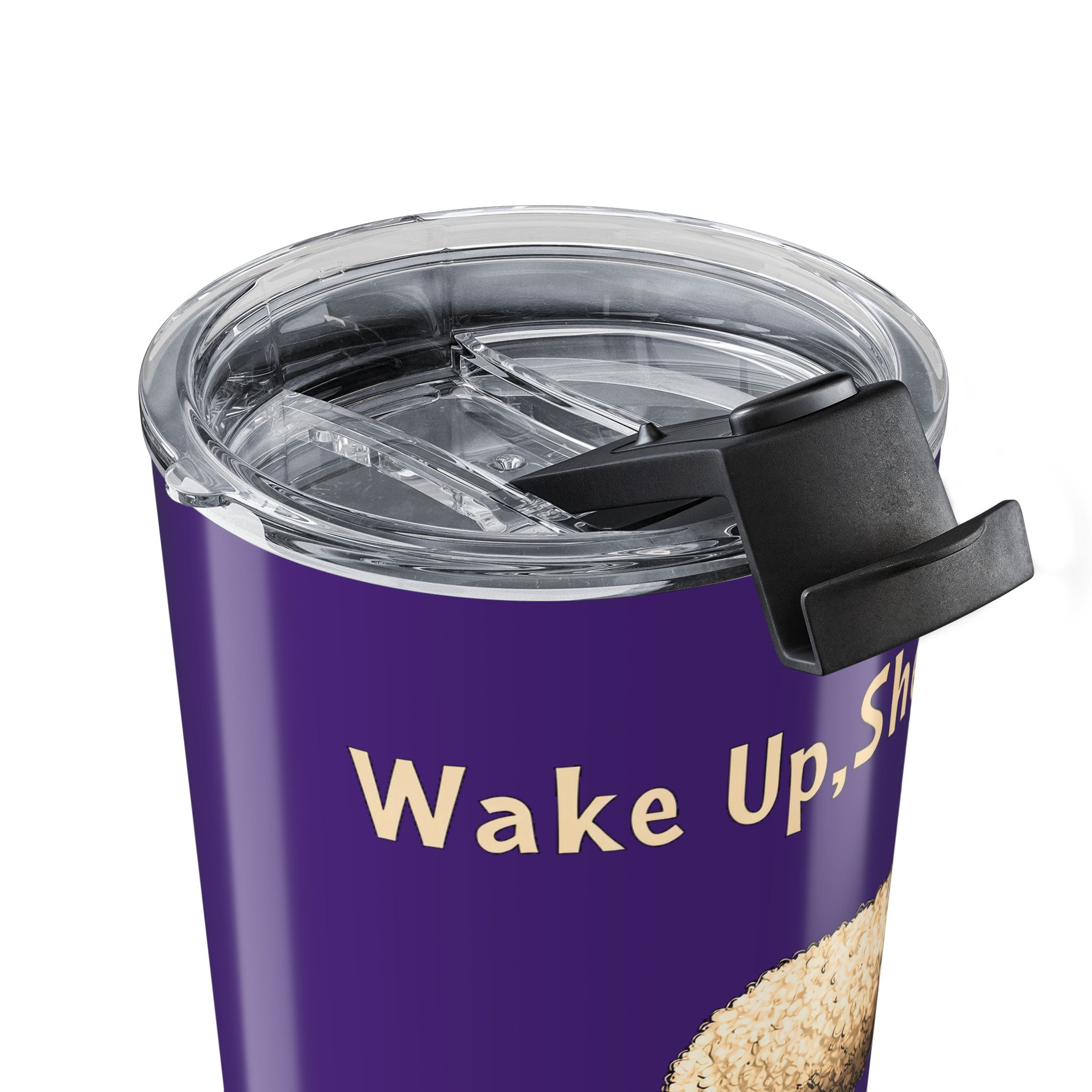 .: Vacuum insulated steel body with a clear push on lid with a rubber gasket